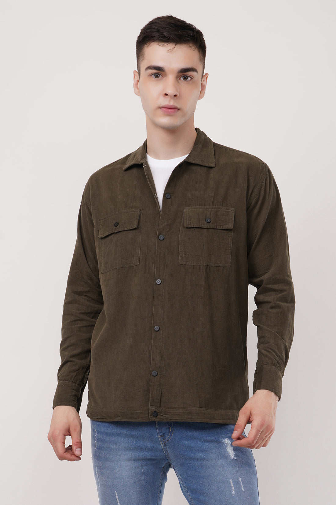 Cocoa Brown Corduroy Shirtover Double Pocket Overshirt in Organic Cotton Shirt Casual Look with ColourJoyLondon