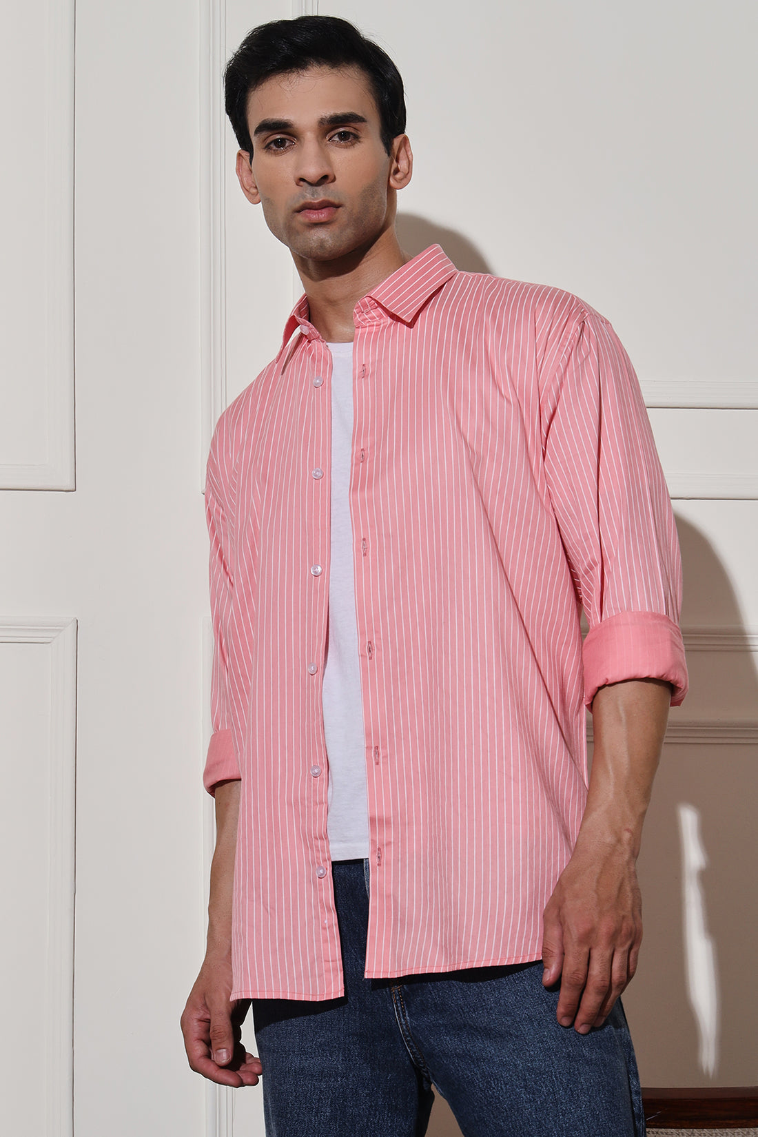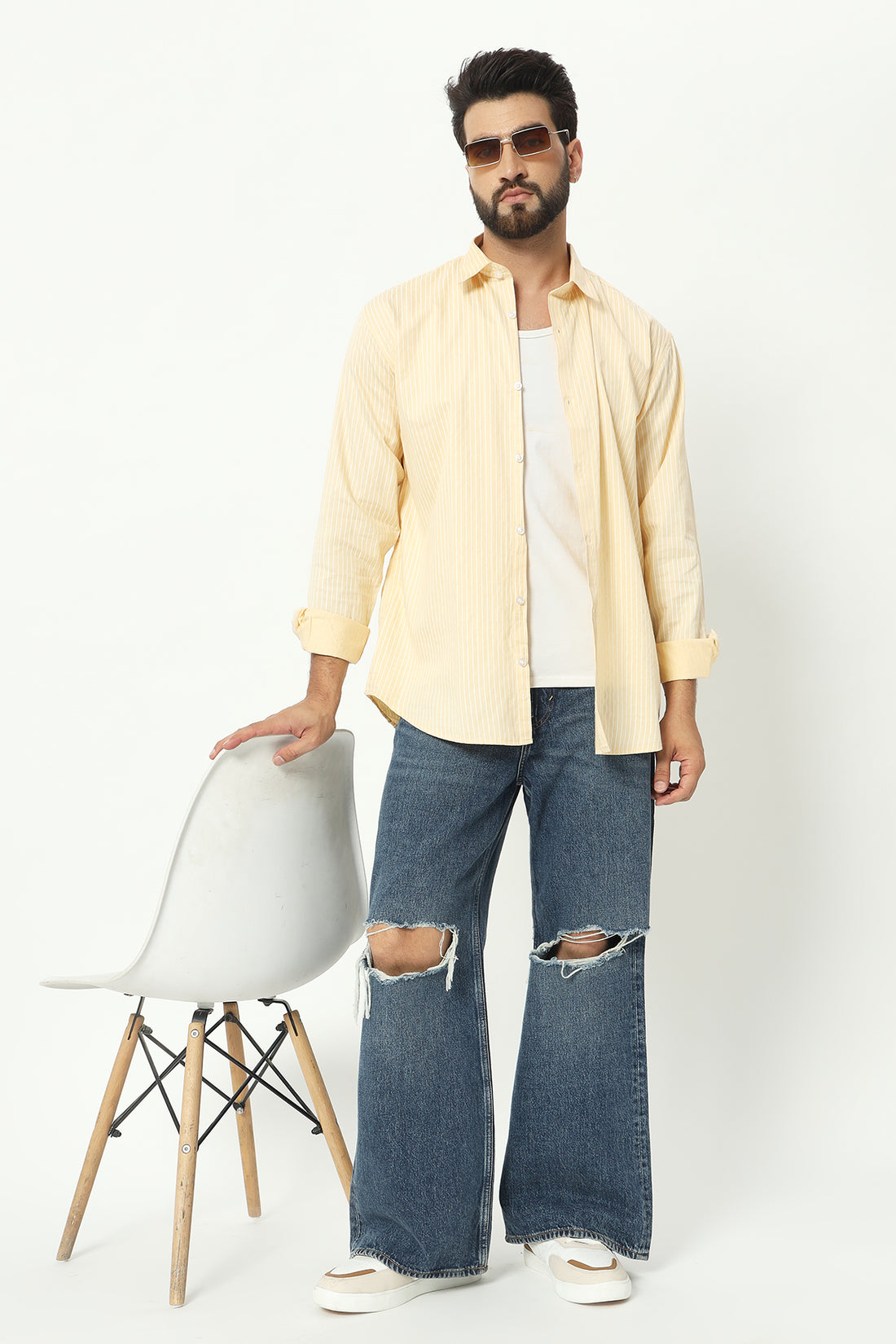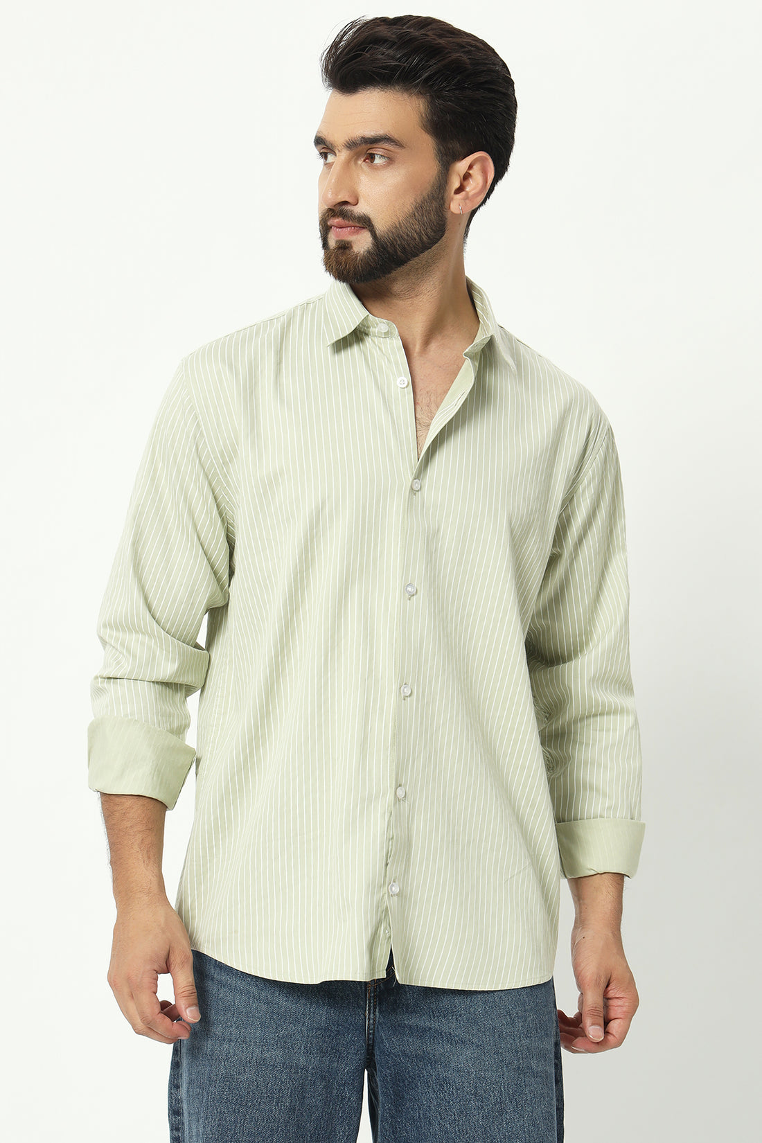 Spread Collar Stripped Men's Shirt - 100% Cotton
