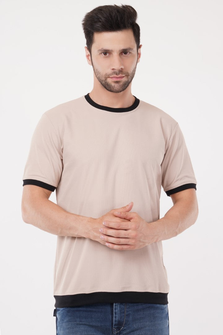 Camel Colored Roundneck Half Sleeve T-Shirt By ColourJoyLondon