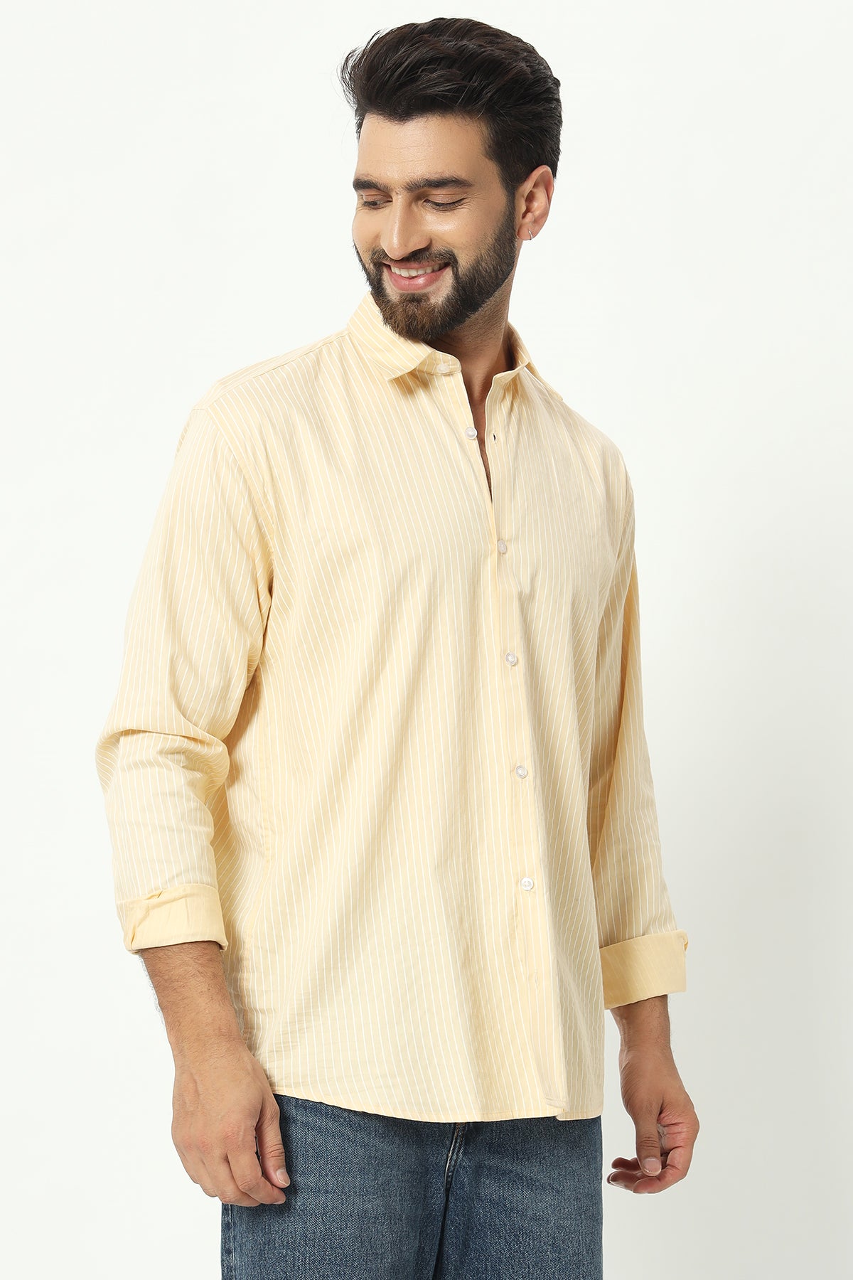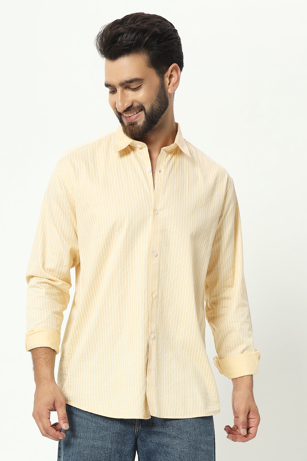 • Stripped Pattern Shirt: Brings a timeless, stylish element to your outfit.