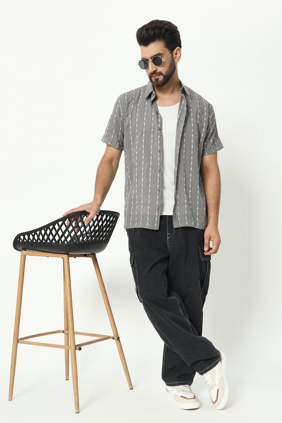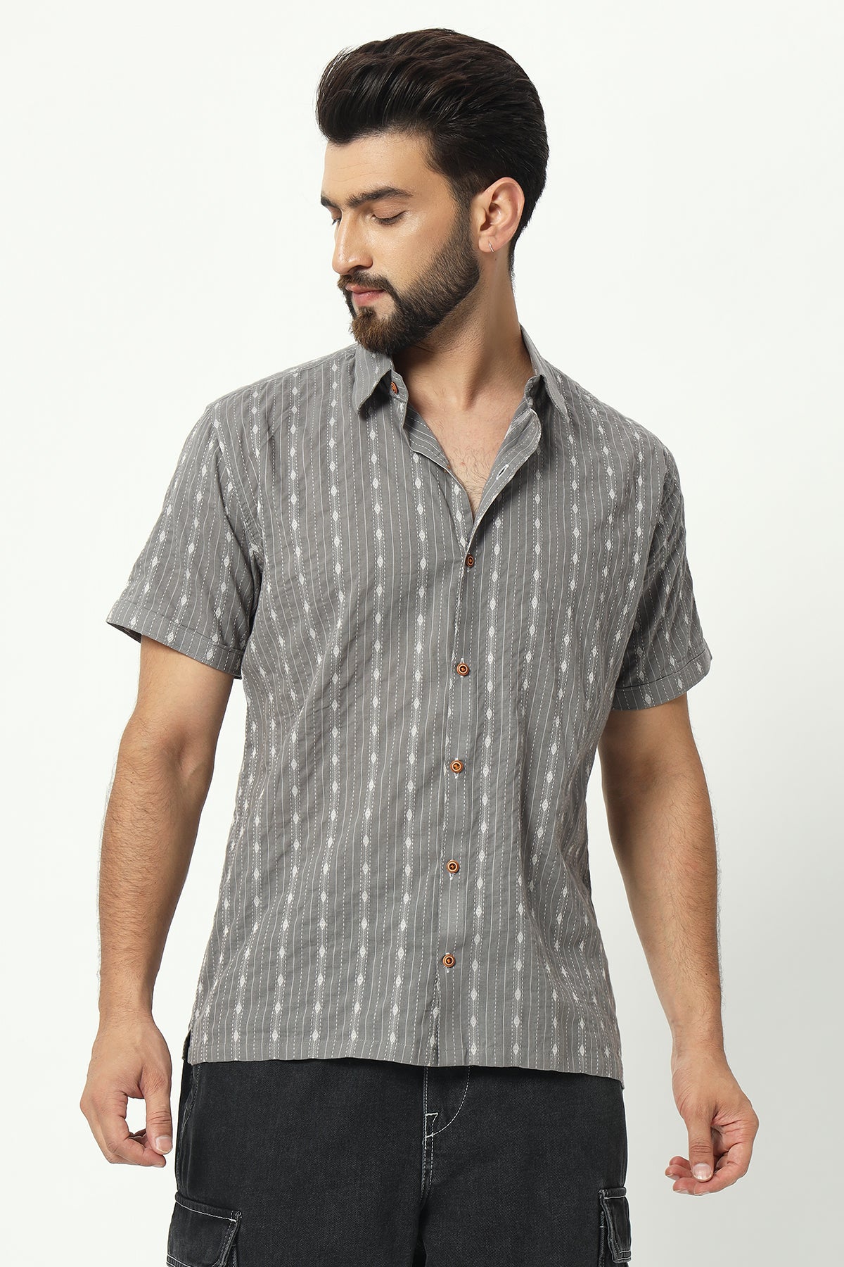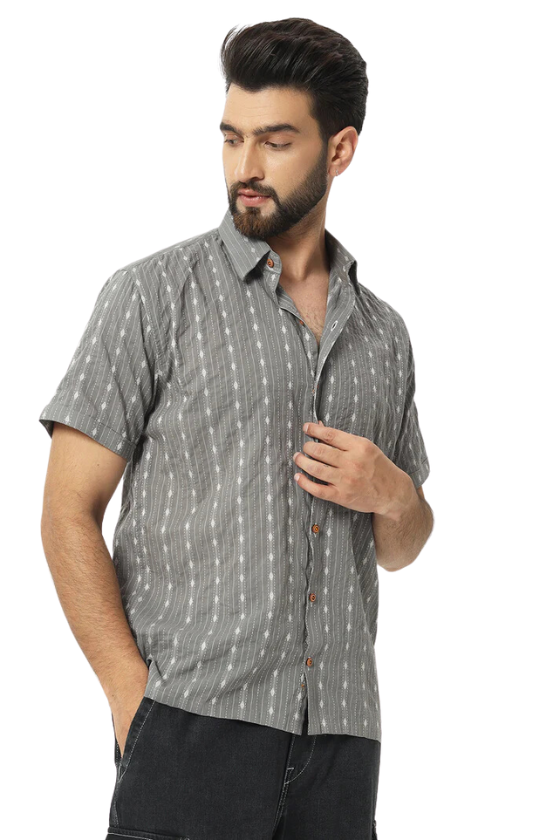 Grey Stripe Men's Shirt - 100% Cotton Spread Collar Shirt