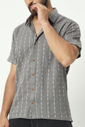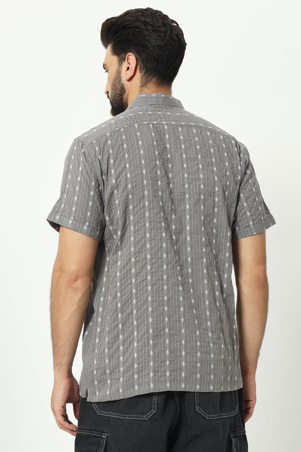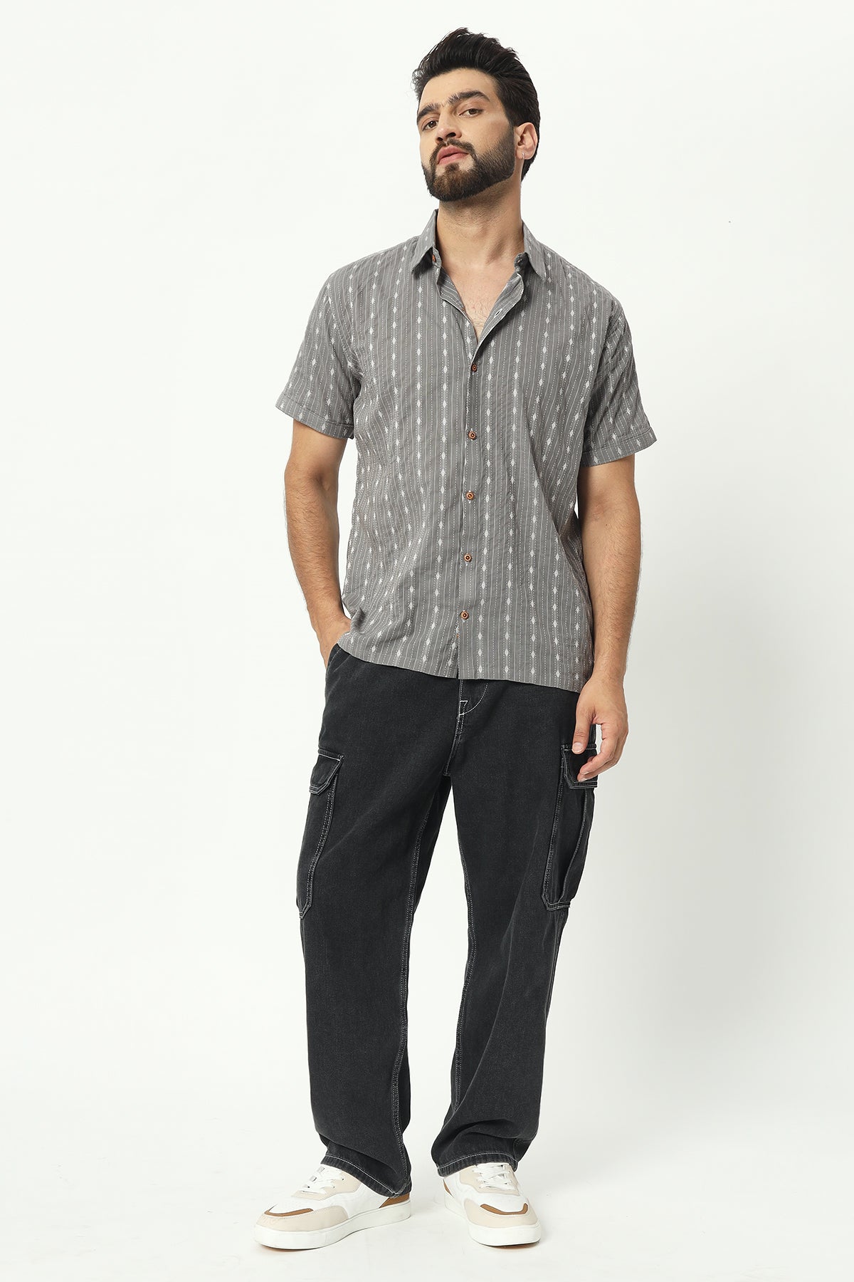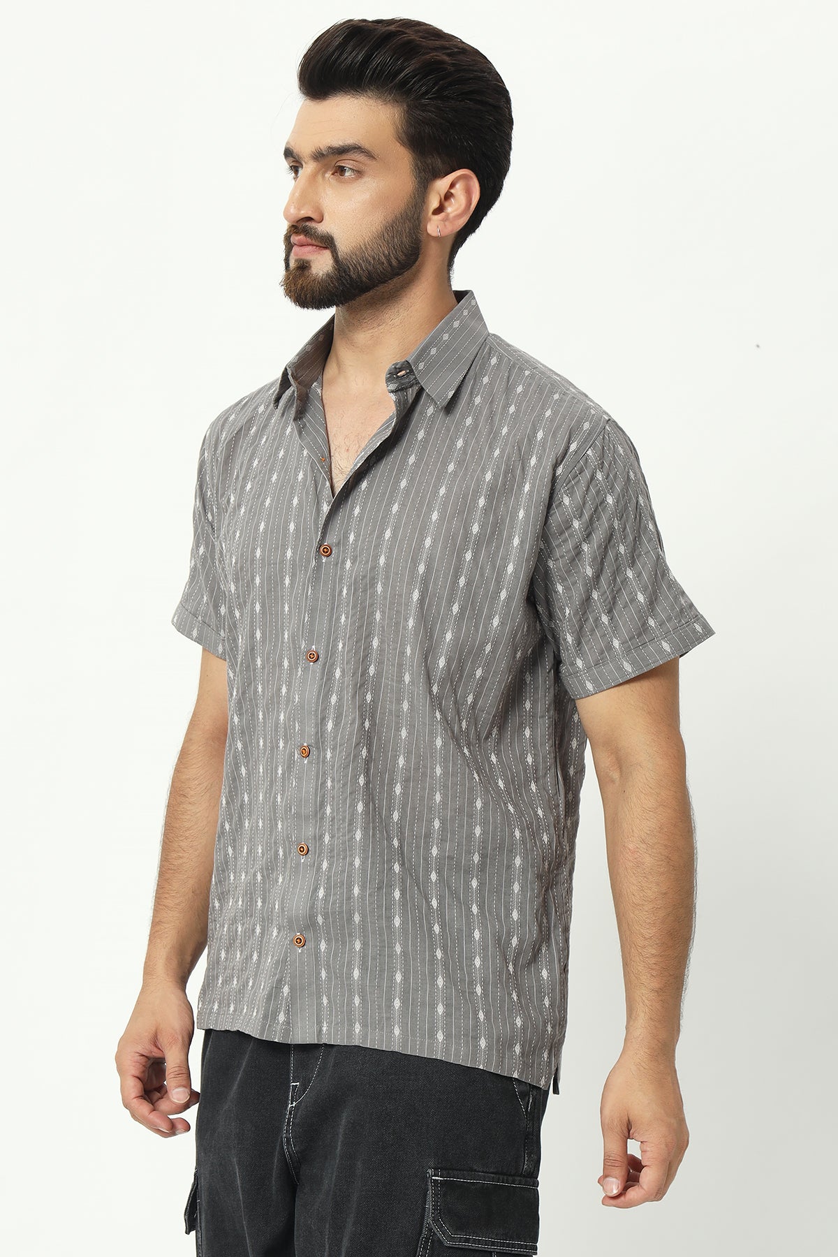 Grey Stripe Men's Shirt - 100% Cotton Spread Collar Shirt