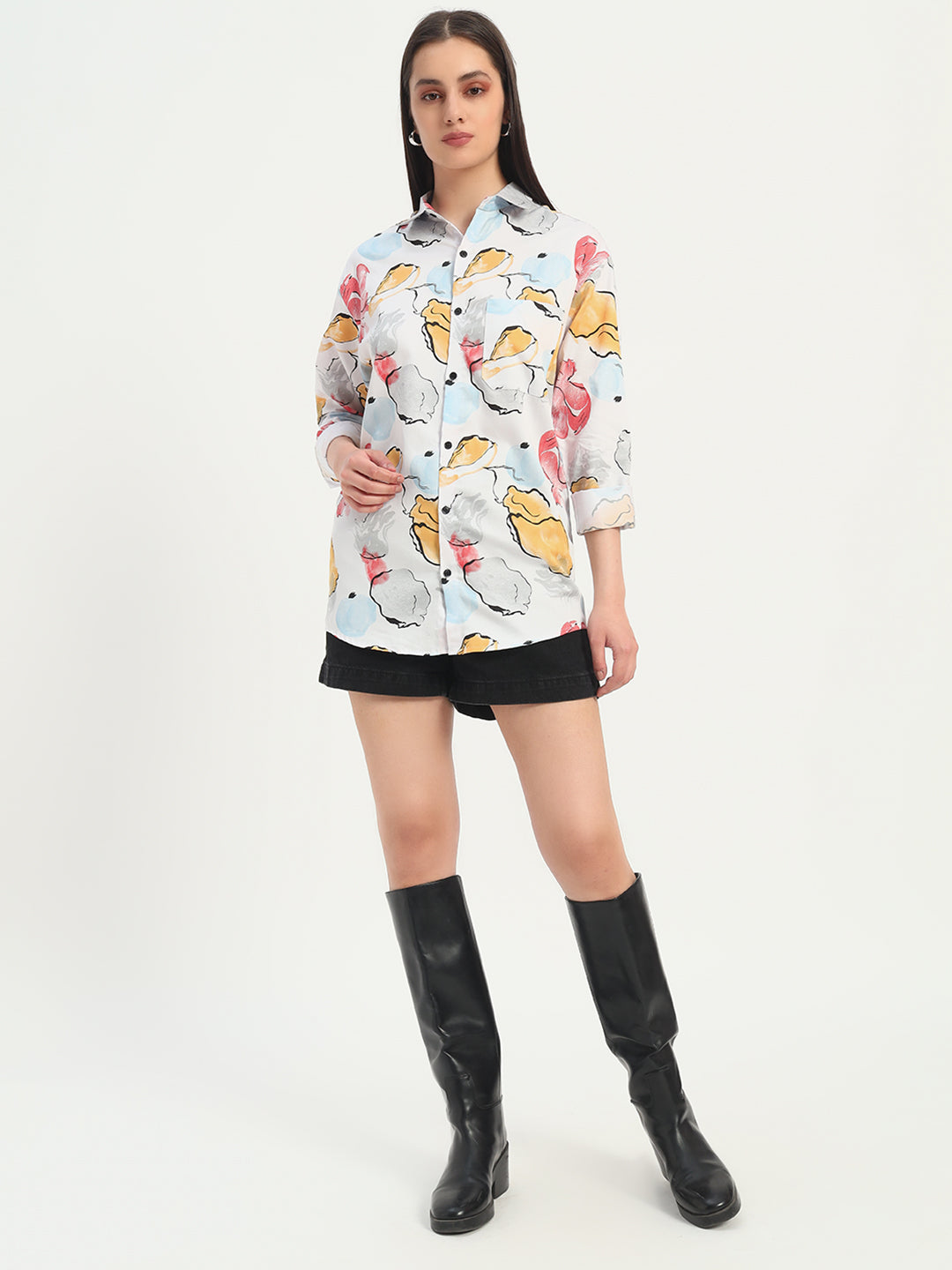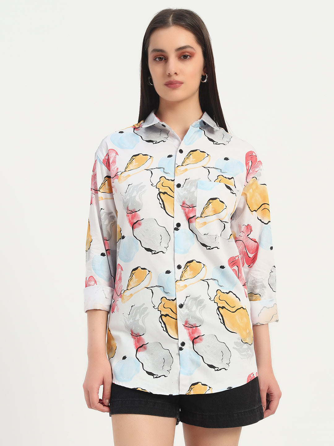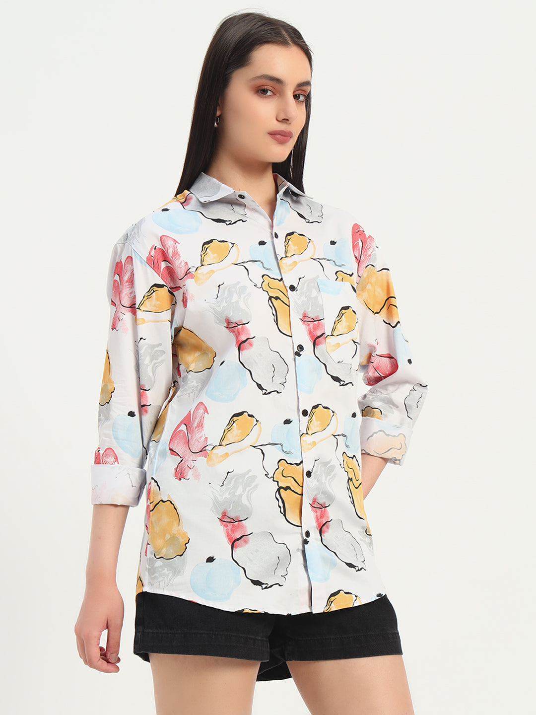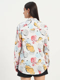Multicoloured Printed Wolf Full Sleeve Casual Oversized Shirts